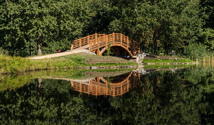 Hier bietet sich dir die Möglichkeit, die harmonische Verbindung von Natur und Baukunst festzuhalten. Die reflektierenden Wasserflächen um die Brücke fangen das Licht auf bezaubernde Weise ein und schaffen eindrucksvolle Spiegelungen. Ein wenig Geduld und das richtige Timing sind entscheidend, um diesen perfekten Moment einzufangen.